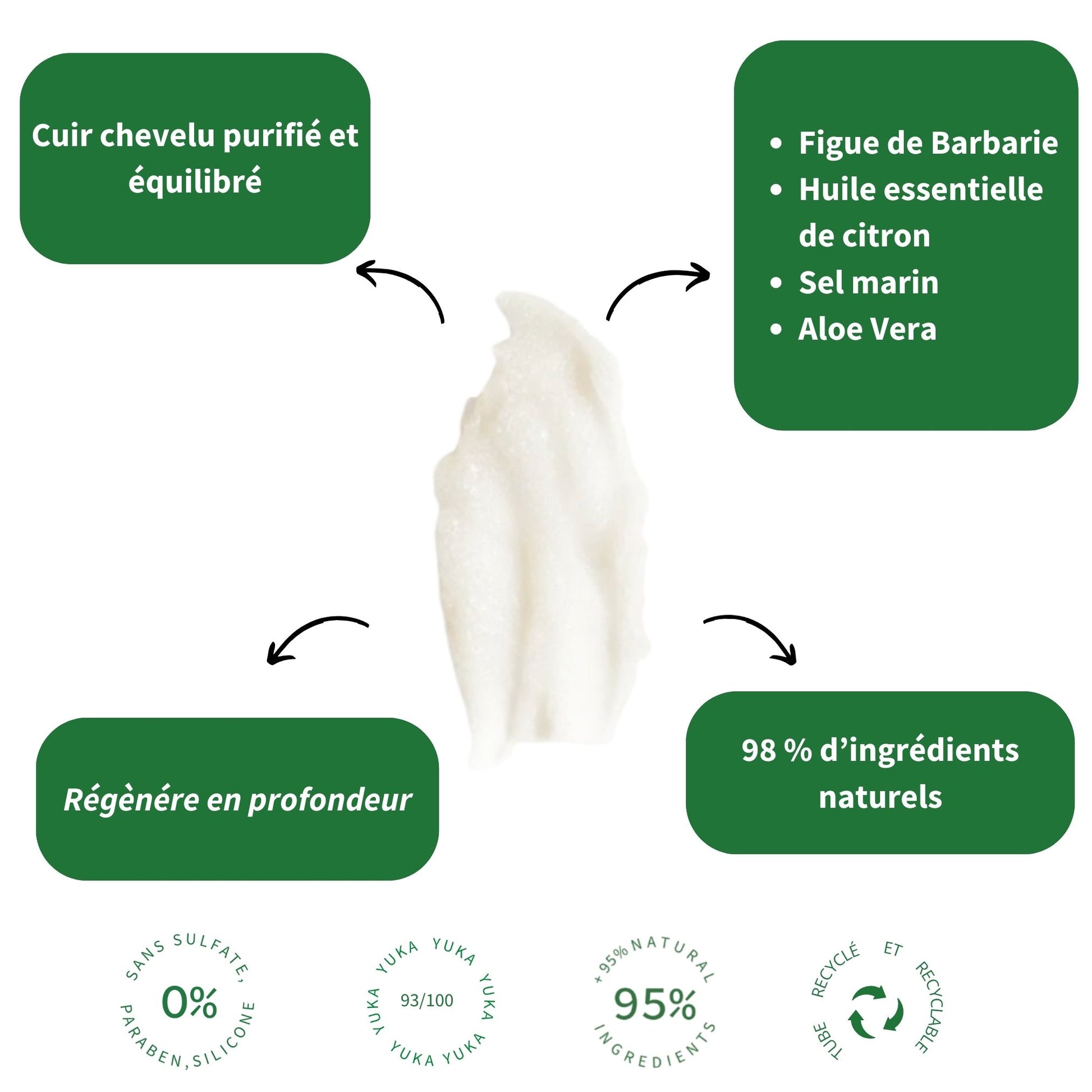 Discover the new essential step: the Pure Scrub with Aloe Vera, 98% natural ! Thanks to the combined action of Aloe Vera, sea salt, and lemon essential oil, this scalp scrub purifies, cleanses, and deeply cleans!